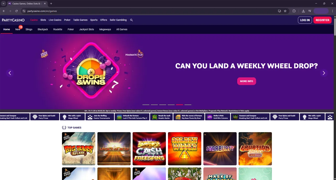 PartyCasino is a well-known online casino brand, proudly associated with the Entain group, which also operates popular Party Casino sister sites such as Bwin and Partypoker. In our Party Casino review, we found that the platform offers a diverse range of games, including slots, table games, and live casino options. For players seeking variety, arcade and instant-win games are also available in certain regions.