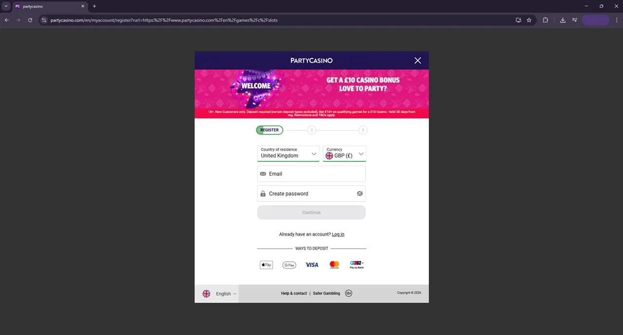 Claiming your PartyCasino bonus is a straightforward process. Follow these steps to get started and enjoy the casino offers: