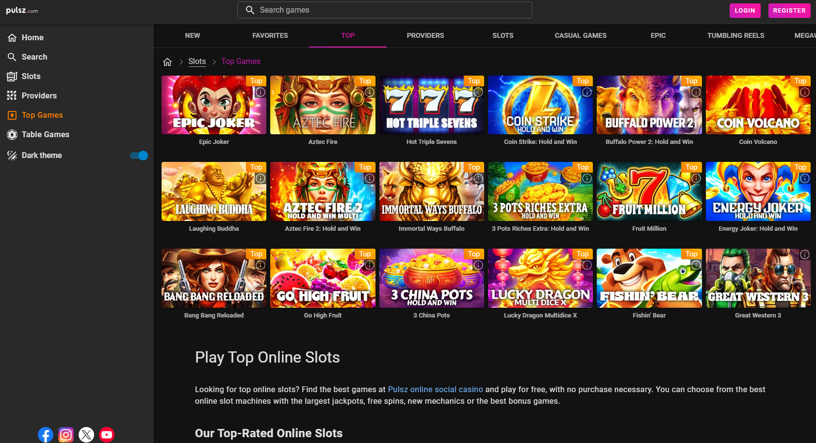 Available in your region!Pulsz Social Casino is a vibrant online social gaming platform where players enjoy a variety of fun casino-style games using virtual currency. With engaging slots, classic table games, and interactive challenges, Pulsz blends a lively community atmosphere with easy-to-use features and regular rewards - all without real-money betting. It’s designed for entertainment, social interaction, and casual play.