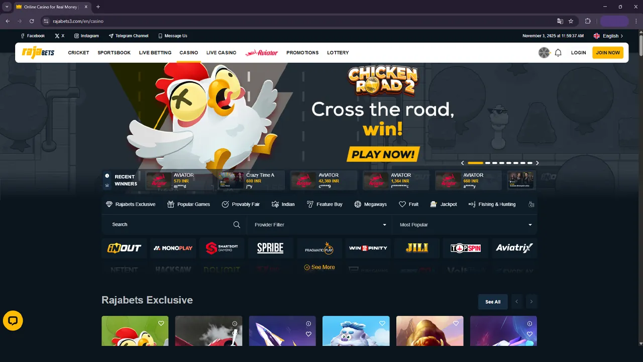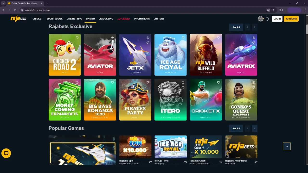Rajabets Casino, founded in 2021 and operated by Corpmove N.V. under a Curacao license, offers a vibrant gaming experience combining slots, live dealer tables, and sports betting. Known for its fast payouts, modern design, and strong focus on the Indian market, it delivers an engaging and secure entertainment environment for all types of players.