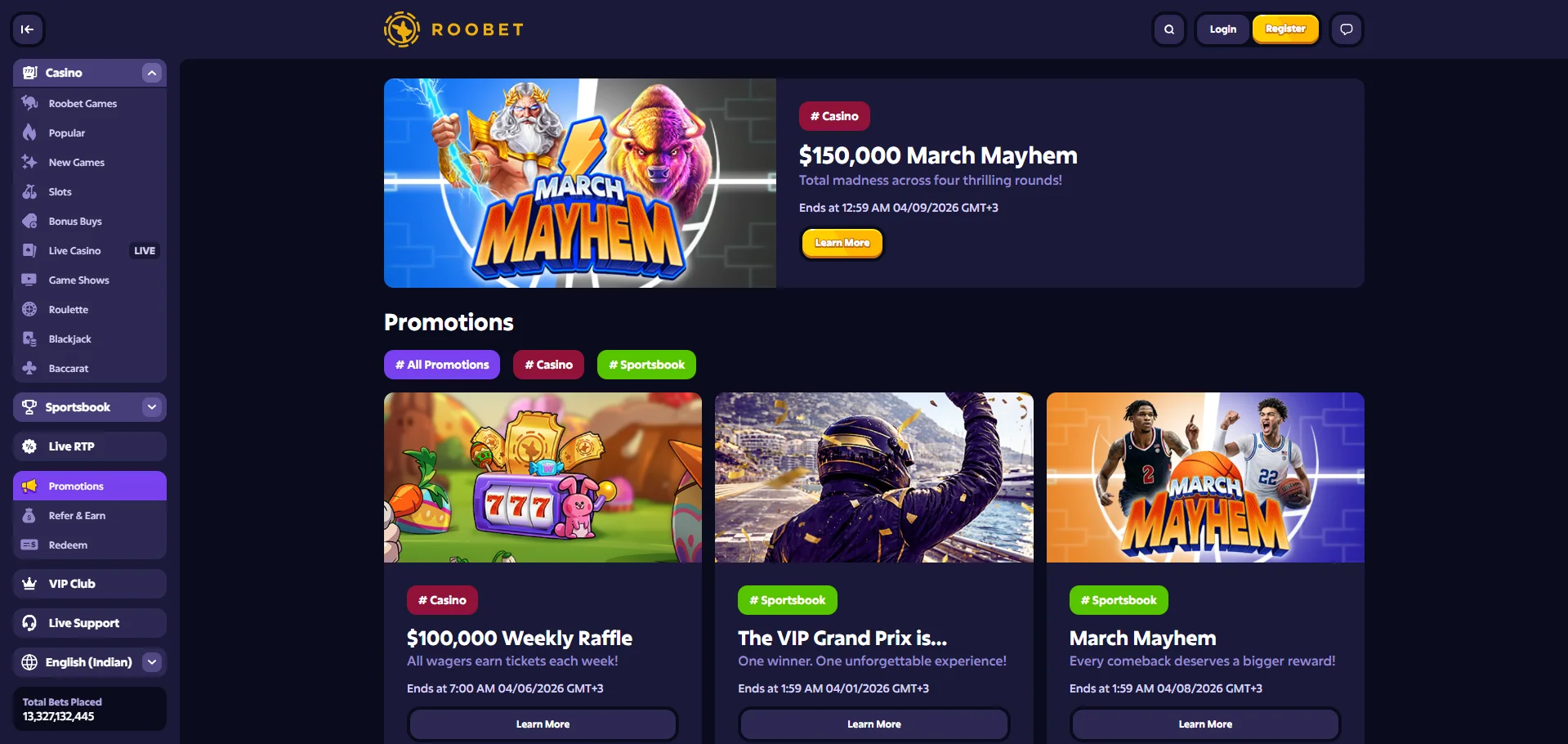 | March Mayhem | Take part in the March Mayhem tournament with a prize pool of $150,000. Hit the reels and earn points with massive multiplier wins to climb the leaderboard. The top 500 players will score a share of $50,000! |