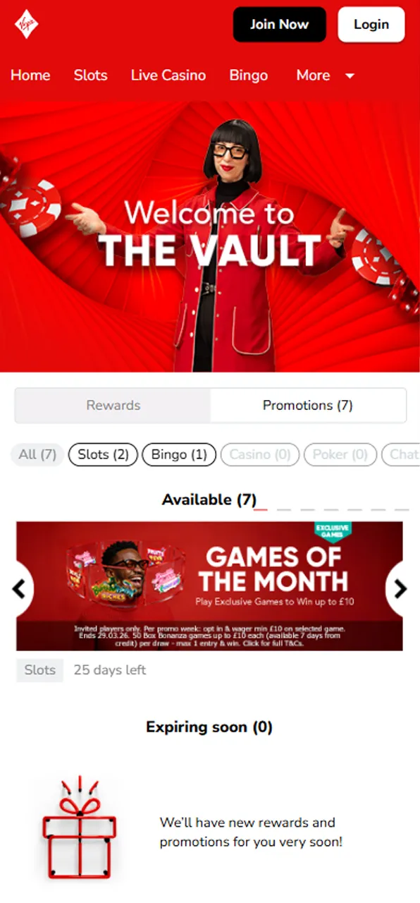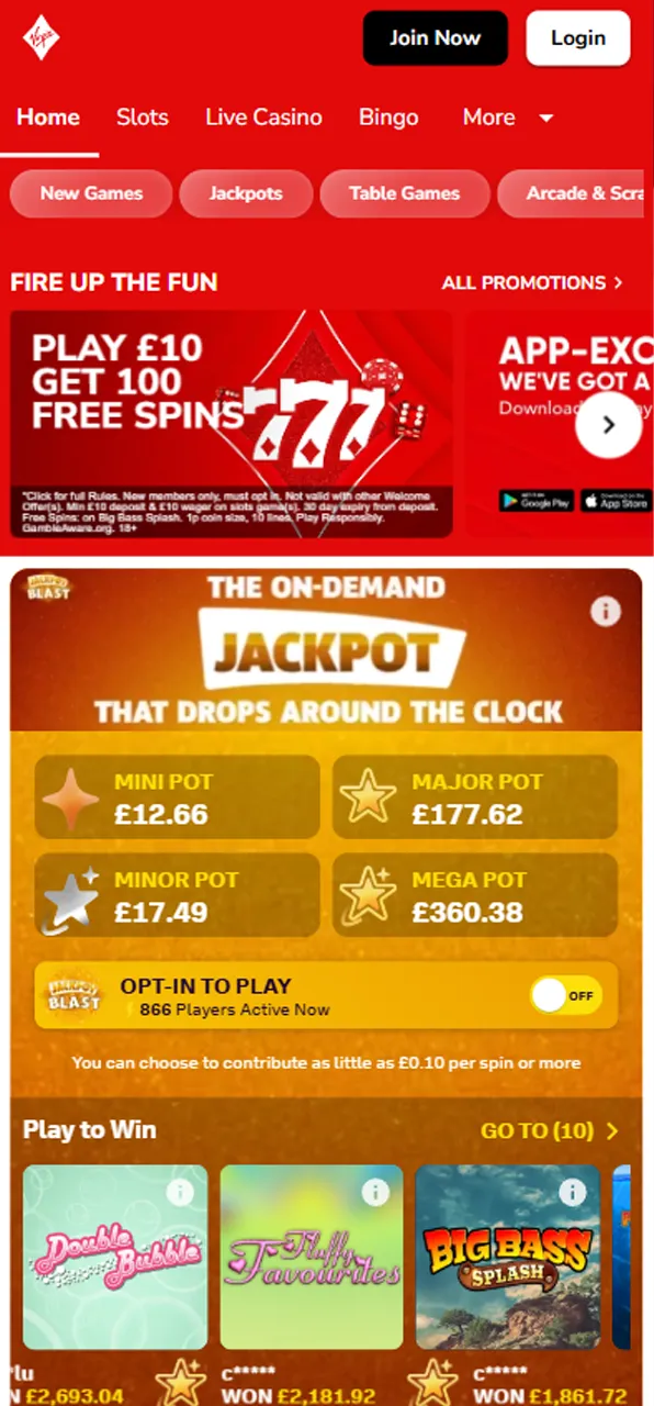 Its biggest strengths lie in its wide games portfolio, featuring popular slots, table games, bingo, and Slingo, along with partnerships with top-tier software providers. The welcome bonus offers flexibility, ongoing promotions add long-term value, and the mobile app ensures smooth gameplay on the go. Payment methods are secure and efficient, with clear withdrawal limits and processes.