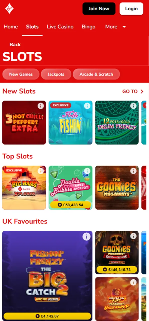 The online slots section at Virgin Games Casino is packed with colourful visuals, exciting bonus features, and a strong mix of classic and modern mechanics. Players can choose from fast-paced, low-volatility slots or high-volatility titles with bigger win potential, including Megaways and jackpot games. The selection is regularly updated and includes many player favourites that are known for engaging gameplay and strong replay value. Most popular online slots:
