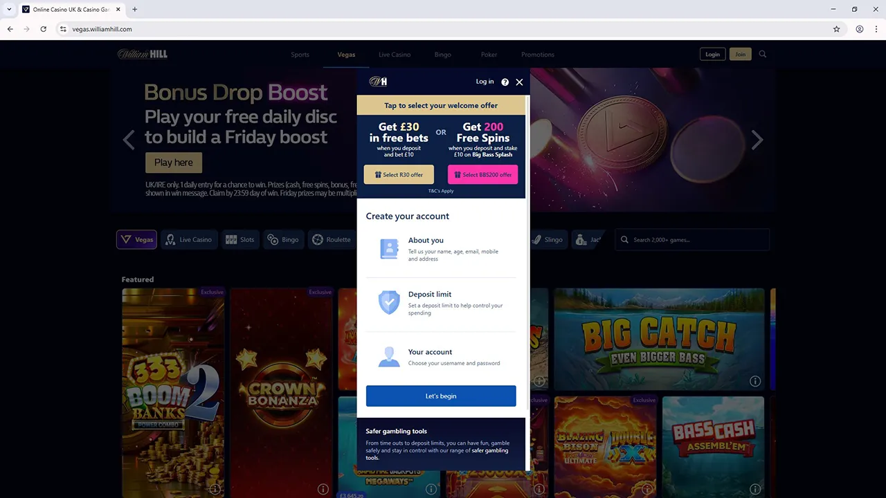 William Hill attracts players with some of the most compelling casino offers on the market. A standout bonus structure is key to a great gaming experience. Below, we’ll take a closer look at two of their most popular promotions for new UK players: the £30 Free Welcome Bonus and the 200 Free Spins on Big Bass Splash.