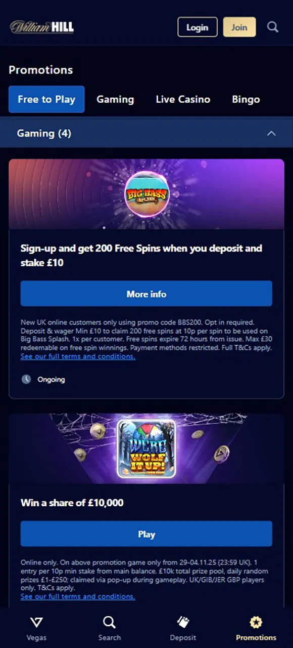 - Wide Range of Games: The William Hill casino online platform offers an extensive selection of slots, table games, and live dealer options.