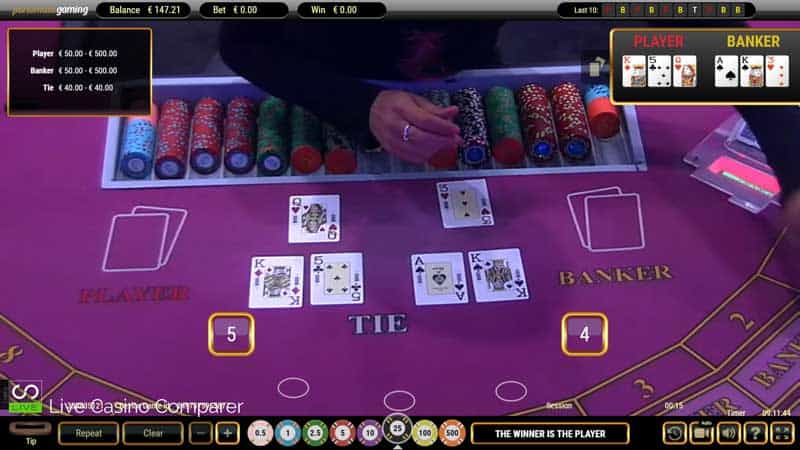- There are no Baccarat Roadmaps, but the last 10 results are displayed on the screen.