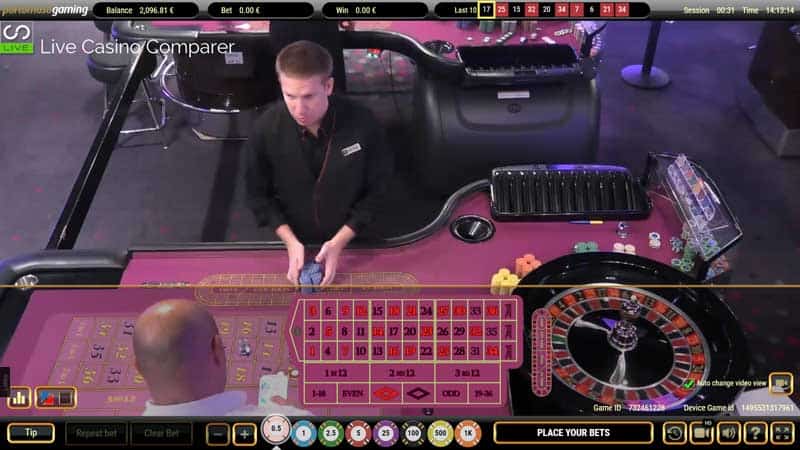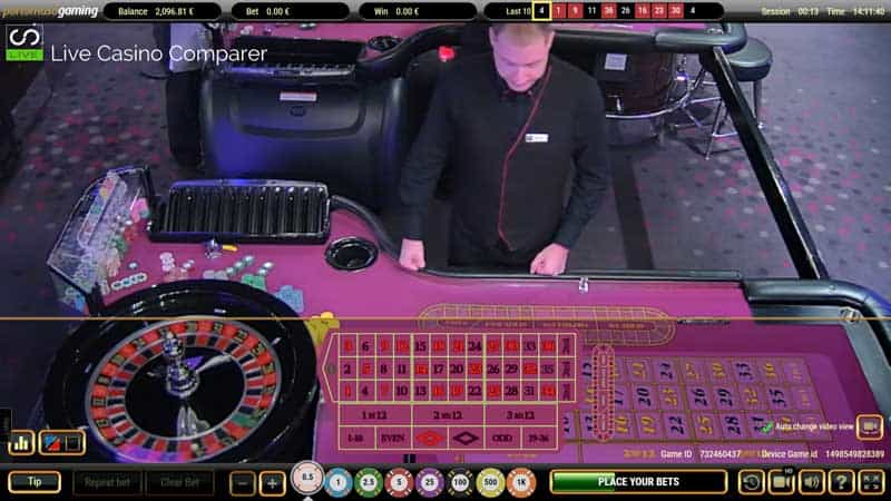 - As with the playing interface on the live streamed roulette, you get a comprehensive set of options.