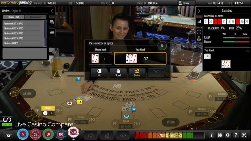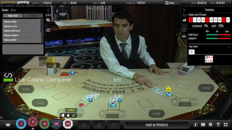 - Live Blackjack streamed from a purpose built studio from within the Portomaso Casino.